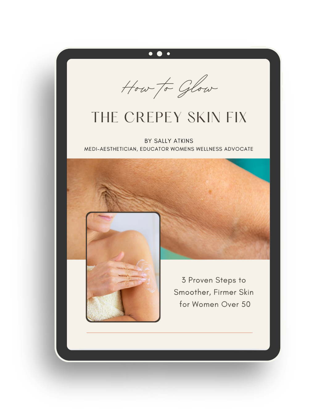 Download this free 3-step guide to reduce crepey skin on arms, legs, and chest. Proven routine for women 50+ from Skincare Expert Sally Atkins.