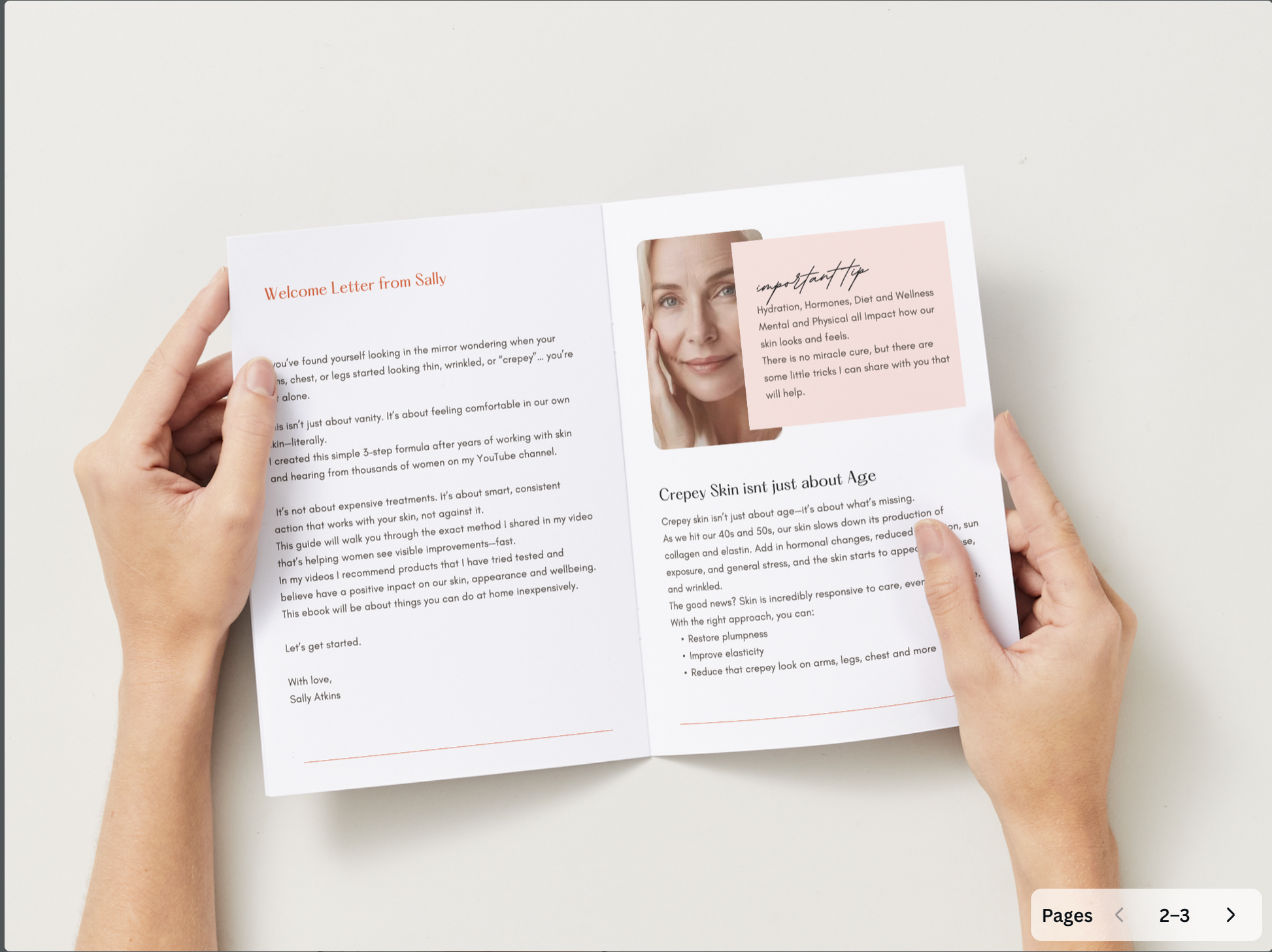 This free guide shares the exact 3-step routine I’ve used and recommended to thousands of women to visibly improve crepey, aging skin — using affordable, natural techniques that work.